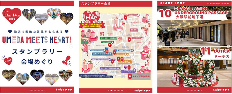 SNS発信では、メインイベント「HEART FES」の各会場紹介に加え、まち中に点在する装飾「HEART SPOT」やスタンプラリー会場の詳細案内を強化しました。