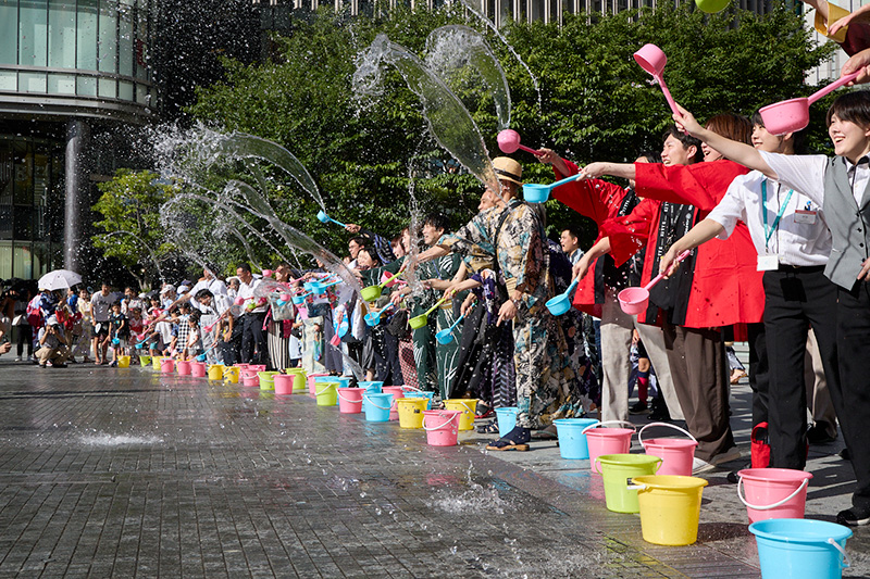 イベント当日は、地域住民や国内外からの来街者、そしてイベント関係者らが垣根を越えて集い、協力して打ち水を行います。この共同作業は、普段接点のない人々が自然と会話を交わし、新たな視点を共有する「出会いの場」となります。皆で同じ目的のために動くひとときが、参加者の中に連帯感を生み、梅田というまちへの愛着を深める大切な縁となります。